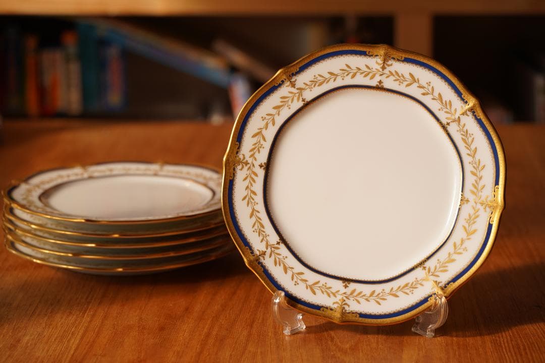 エルメス銀座店にて購入いたしました。こちらのセットで家族の人数分プラス余分に購入し、一部全く手付かずのまま食器棚にしまっておりました。出品にあたり確認しましたところ、金彩の部分が多少すれているように見える箇所がありますが、店頭でももとからその程度はあるレベルです。ハゲ、カケ、ワレなどはもちろんございません。購入後箱などは全て処分し一部重ねてしまってありました。器は好きですし大事にしておりますが、素人が自宅にて保管しておりましたものですので細かなことが気になる方はご購入をお控えください。トラブル防止のため返品返金はできません。その点ご考慮いただいたうえでご検討お願いいたします。先ほどエルメスの公式ホームページを確認いたしましたところ、同じ商品(蓋付きボウル)が販売されておりましたのでぜひ一度そちらもご確認ください。さて、こちらは深皿と小皿、蓋付きボウルの3点セット(未使用)になります。同じものを愛用しておりますが、ティータイムにはもちろん、おもてなしや普段の食卓にも便利なアイテムです。もともと茶碗蒸しの器を探しており、こちらの蓋付ボウルに目が止まりました。青いお皿を受け皿にして、茶碗蒸しの他に炊き合わせを盛っても素敵ですよ。色柄的にも、不思議と和食がしっくりきます。白い深皿は高台皿のような形で、少し高さがあるところが気に入りました。八寸のように少しずつお料理を盛り合わせるにも良いですし、我が家では散らし寿司を取り分けるのにも活躍します。白にゴールドですから合わないものを探す方が大変なくらい…もちろんスイーツやフルーツも映えますね。蓋付きボウルは受け皿なしで使っても良いですし、白いお皿を組み合わせ余白に他のものを添えるような使い方(お写真9枚目)も素敵です。蓋付きボウルは蓋の方に溝がありますので、蓋なしで普通のボウルとしてお使いいただけます。色合い的にこれからの季節にもぴったり。複数セットをご希望の場合、同じ状態のものをあと2セット(全3セット)まではお譲り可能ですので、お声がけください。サイズ蓋付きボウル ボウルの方の直径が9.3cm白い深皿 直径16.5cm青い小皿 直径14cmまとめ買いのため細かな金額は把握しておりませんが、3点で13万円ほどではないかと思います。どうぞよろしくお願いいたします。
